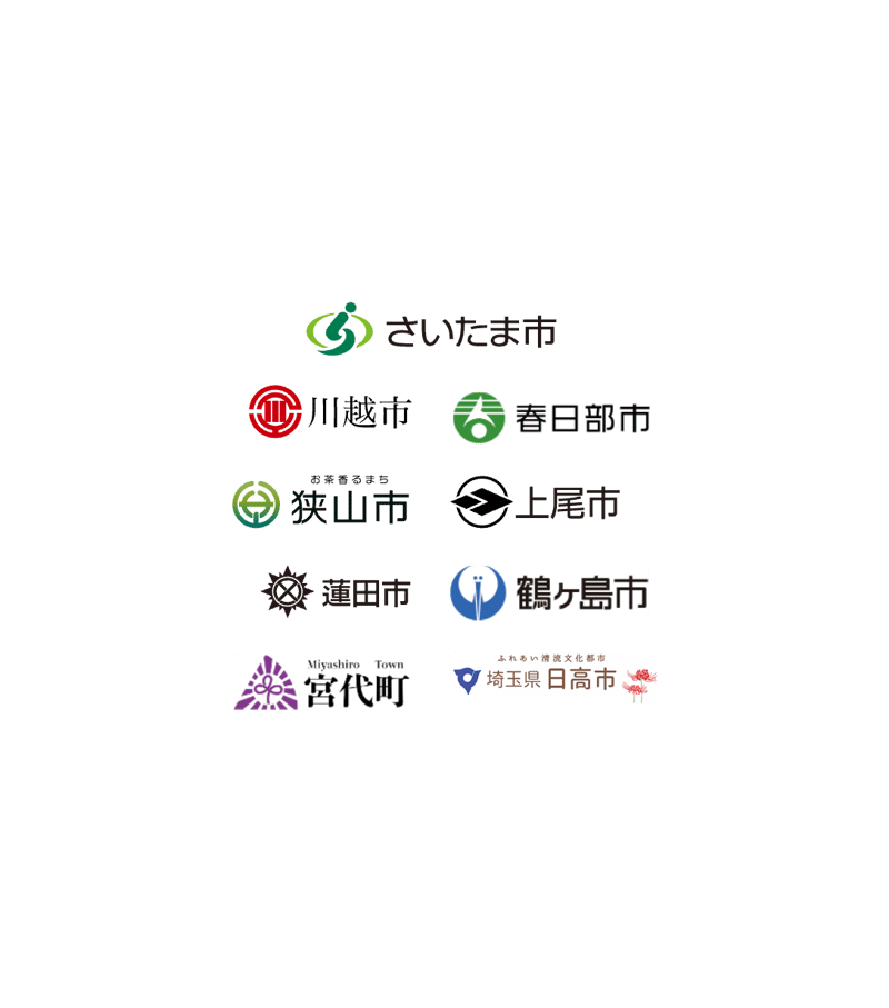 本事業は、埼玉県の下記市町とアイチューザー(株)が協定を締結し実施しています。